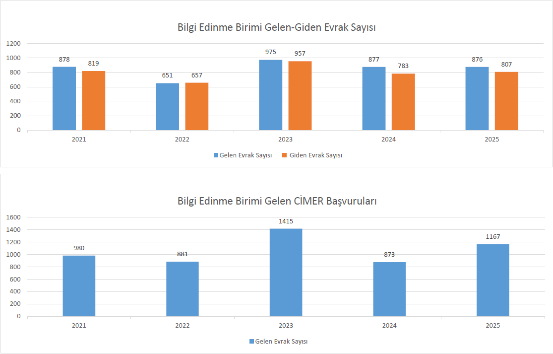- Demokratik ve şeffaf yönetimin gereği olan eşitlik, tarafsızlık ve açıklık ilkelerine uygun olarak, kişilerin bilgi edinme haklarını kullanmalarına ilişkin esas ve usulleri düzenleyen 4982 sayılı "Bilgi Edinme Hakkı Kanunu" 24 Ekim 2003 tarih ve 25269 sayılı Resmi Gazetede yayımlanarak, 24 Nisan 2004 tarihinden itibaren yürürlüğe girmiştir. Bilgi Edinme Hakkı Kanununun Uygulanmasına İlişkin Esas ve Usuller Hakkında Yönetmelik ise 27.04.2004 tarihli Resmi Gazetede yayımlanmıştır. Üniversitemiz Genel Sekreterlik Birimine bağlı olarak görev yapan Bilgi Edinme Şube Müdürlüğü; ilgili yasa ve yönetmelikler doğrultusunda yapılan tüm başvurular ile ilgili işlemleri titizlikle yürütmektedir.